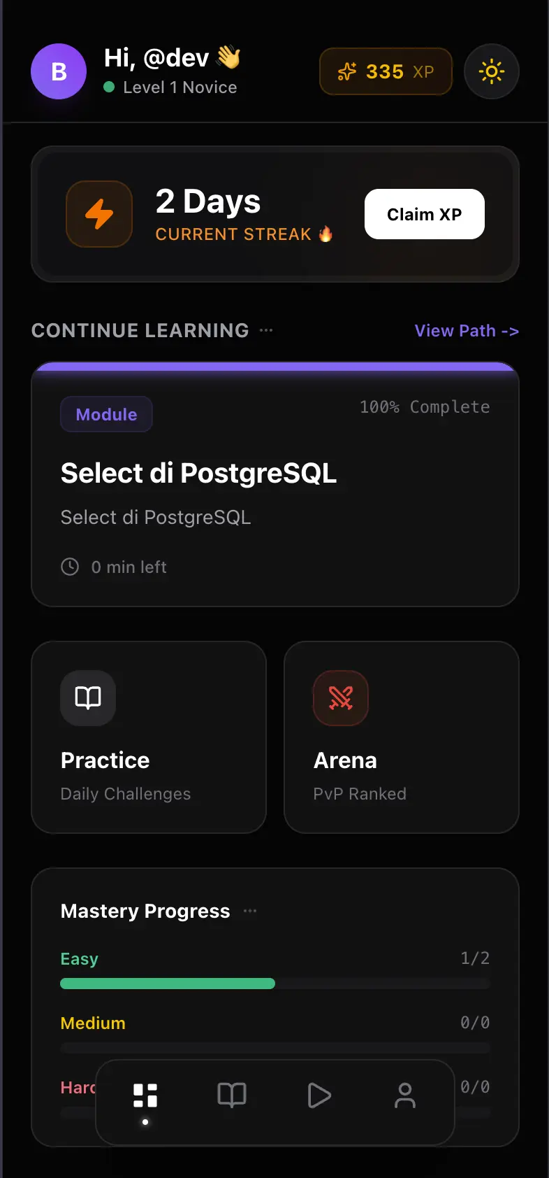 The most effective way to learn database skills. Built for touch, designed for mastery.